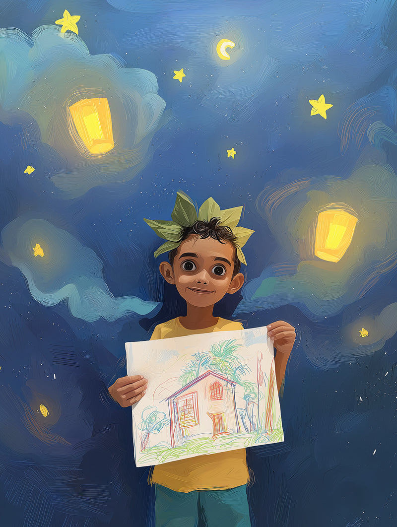 Little Architect – Whimsical Night Sky Art Print