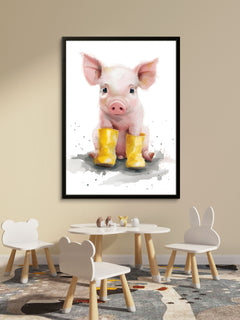 Little Piglet in Yellow Boots - Cute Watercolor Piggy Nursery Decor