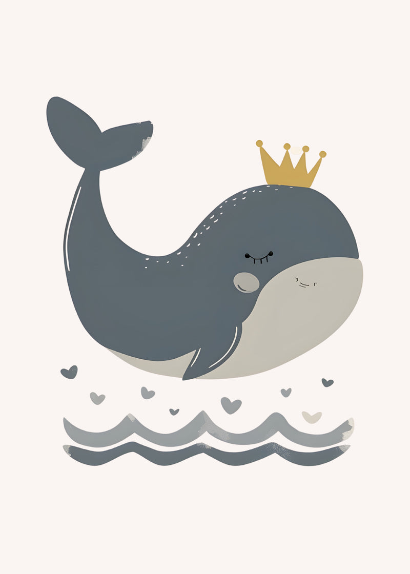 Little Prince Whale - Cute Crowned Whale Nursery Art