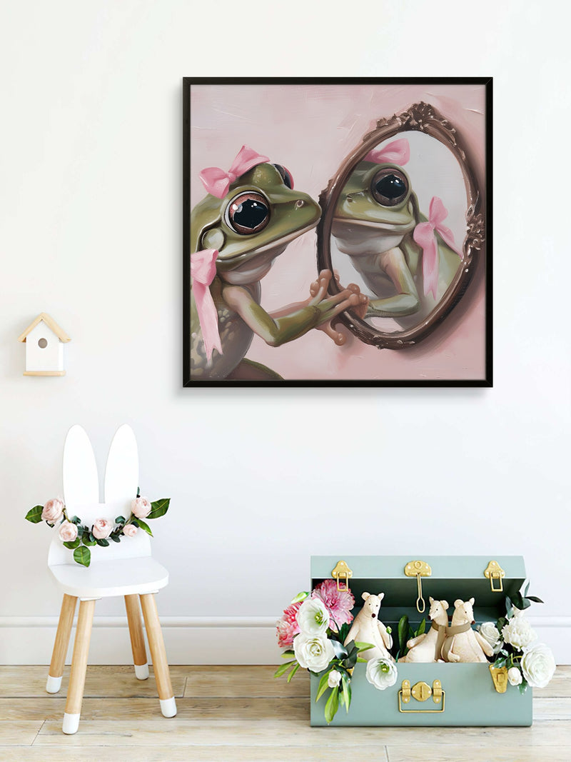 Mirror, Mirror, Am I Pretty? - Froggy Reflection Art Print